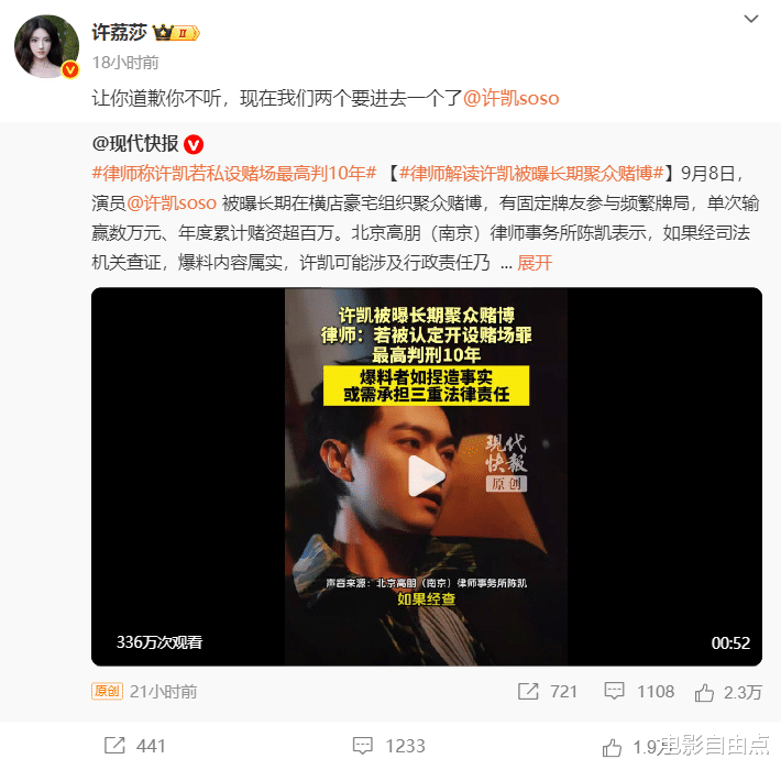 知名娱乐法律师分析:“从现有证据看,若查证属实,许凯不仅可能受到行政处罚,甚至或被追究刑事责任。特别是将其住宅作为赌场使用,还可能涉嫌为赌博提供场所罪。”