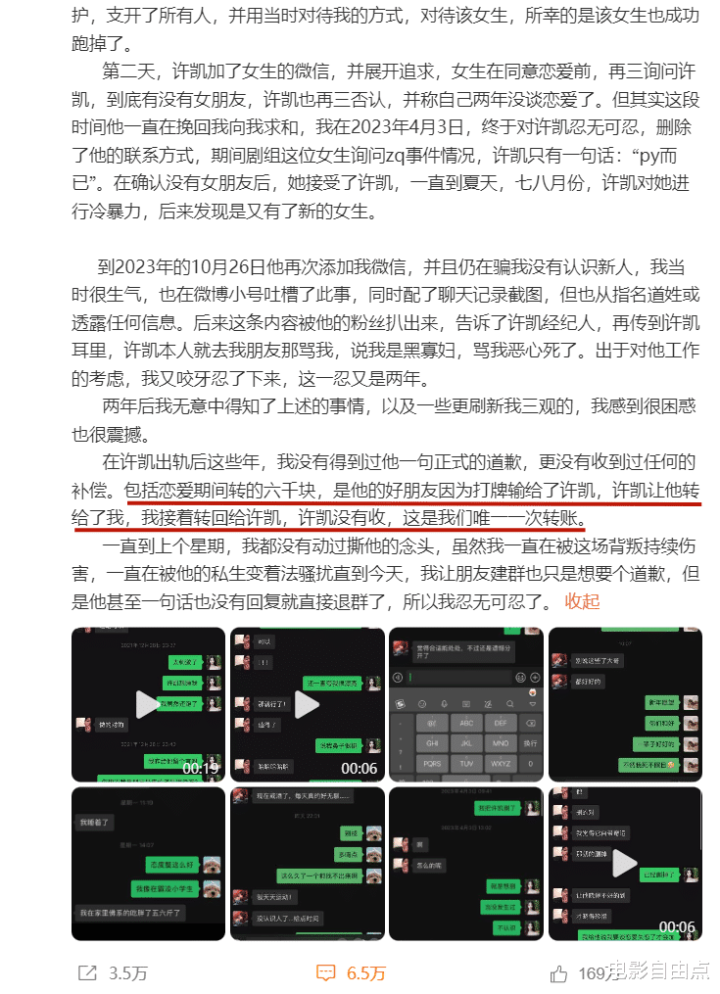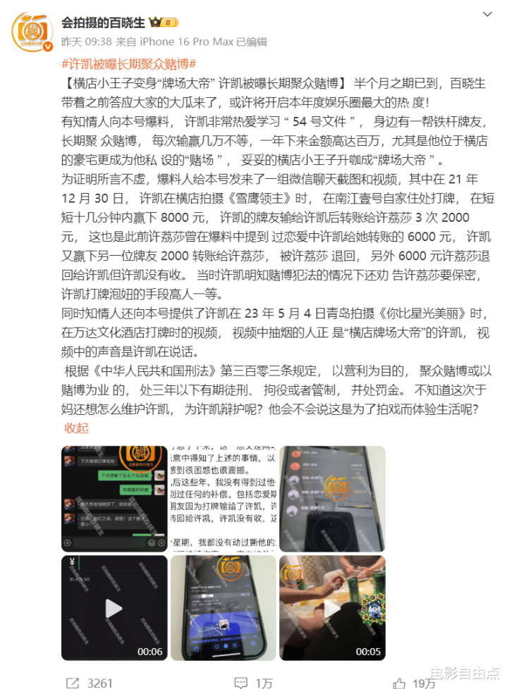 聊天记录、转账截图、私密视频连环爆,许凯被前女友实锤赌博出轨,一年输赢百万,横店豪宅变私人赌场!